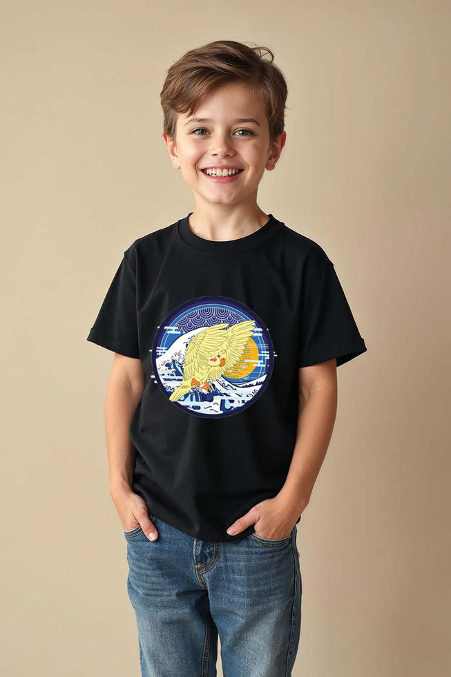 Golden Eagle Printed T-Shirt for Kids – Majestic Bird with Ocean Wave and Sun