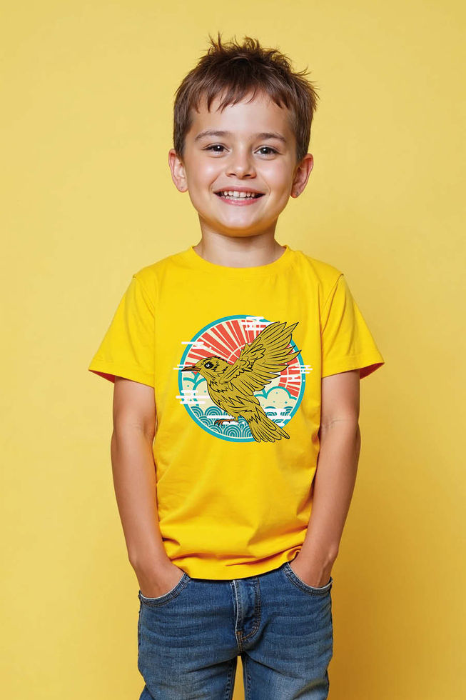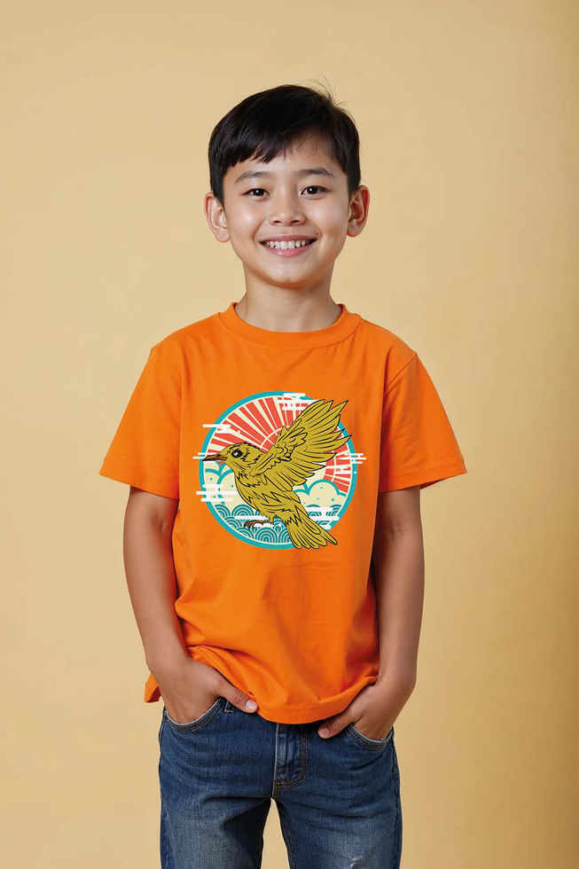 Golden Eagle Rising Sun Printed T-Shirt for Kids – Bold Japanese Art Graphic Tee