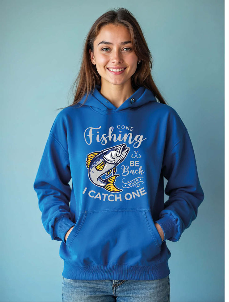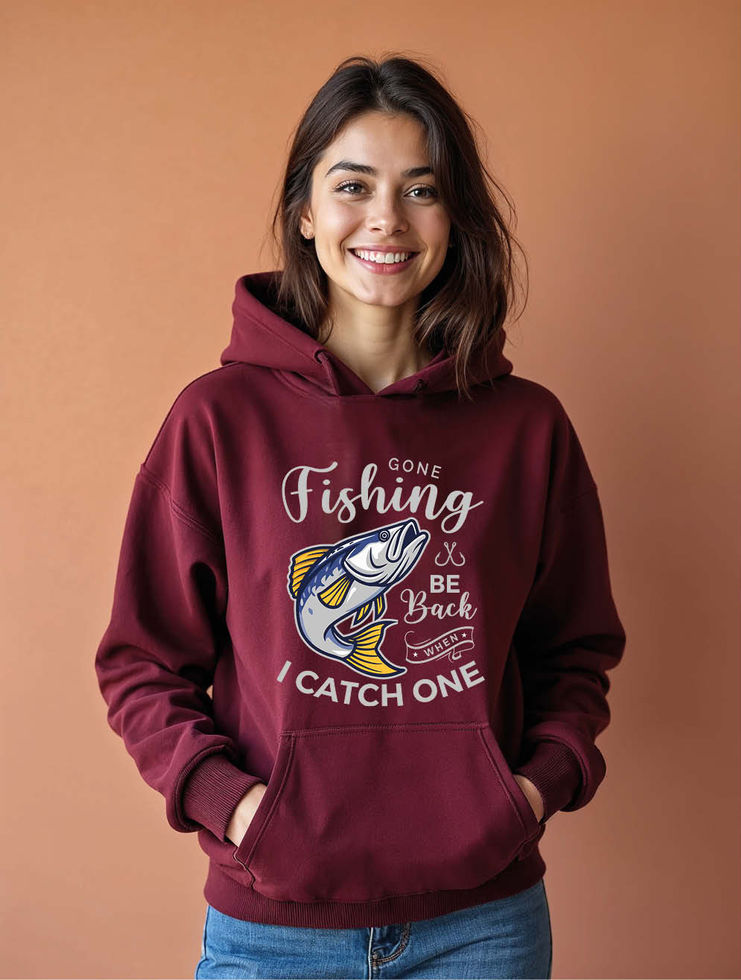 gone fishing be bach when i catch one Woman's Printed Graphic Stylish Hoodies