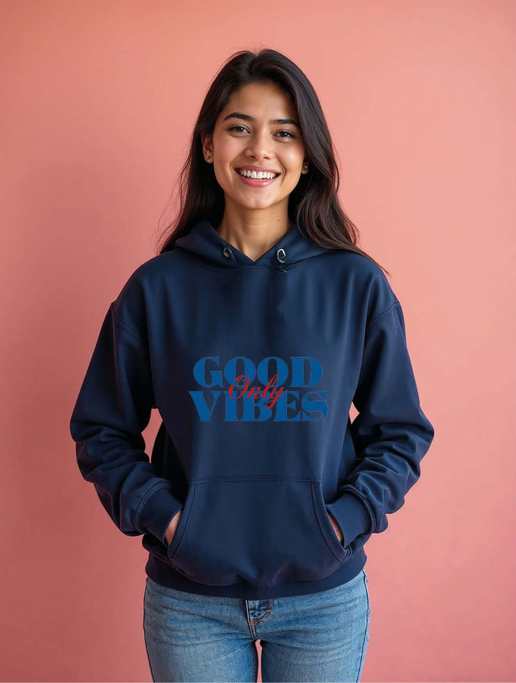 good vibes only Classic Stylish Women’s Typography Hoodies – Shop Now
