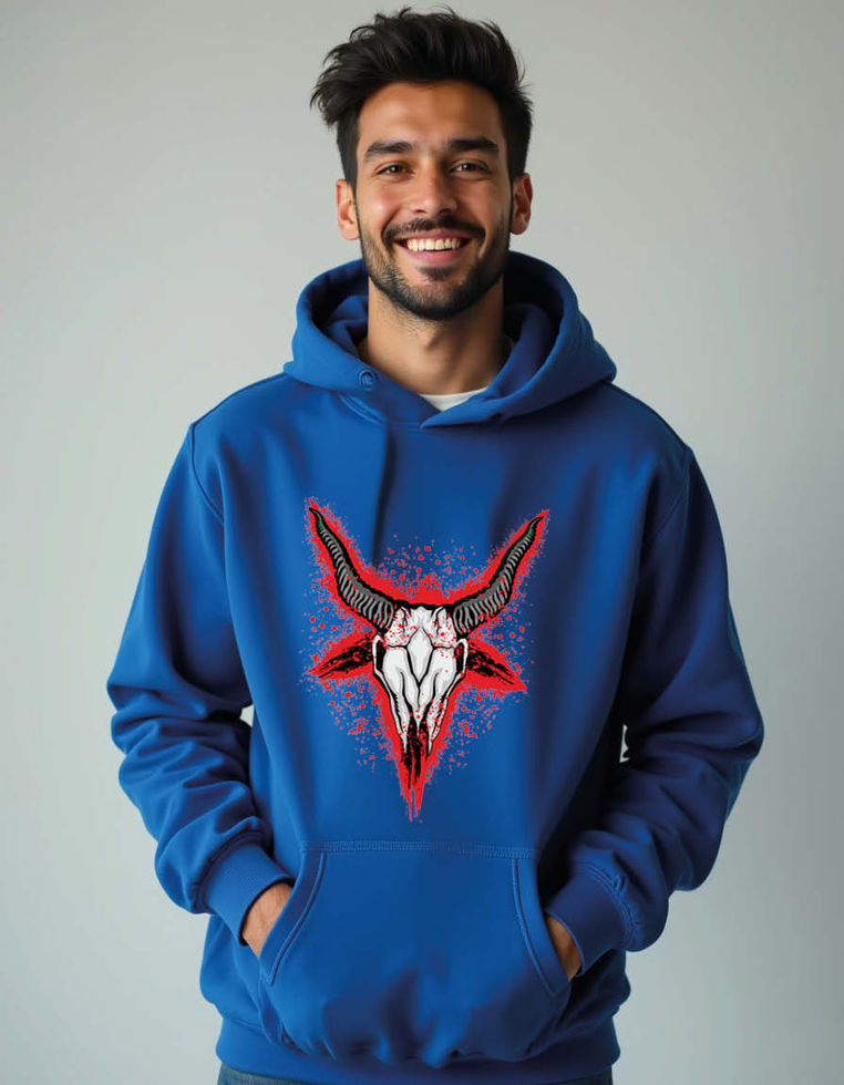 gothic sign with goat skull grunge vintage Unisex Graphic Printed Hoodies
