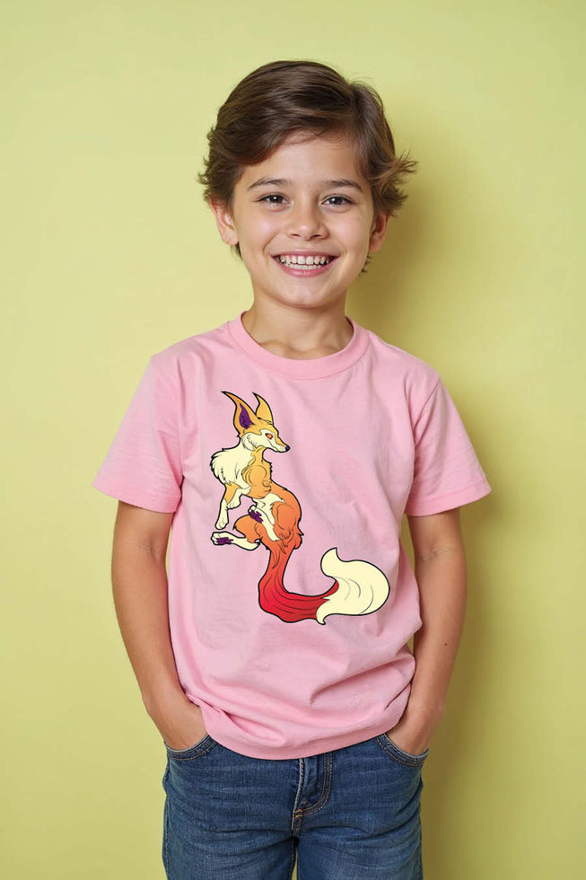 Gradient-Tailed Fox Spirit Premium Kids Printed T-Shirt – Cartoon Print Design