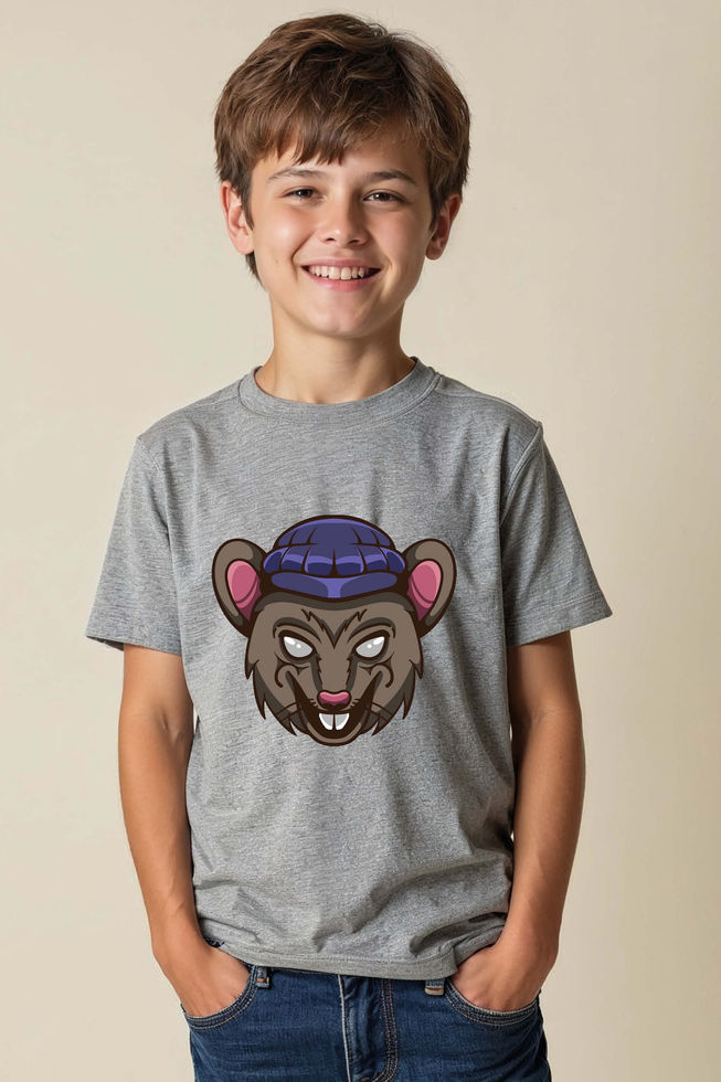 Grinning Rat with Beanie Kids T-Shirt Comfortable Casual Kids Printed T-Shirt