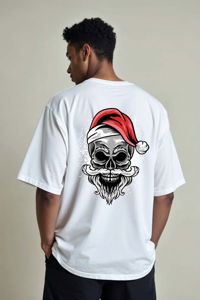 Gritty Santa Skull Christmas Unisex Oversized Drop Shoulder T-Shirt