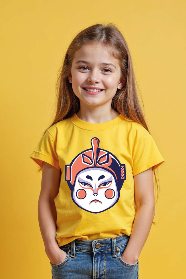 Grumpy Samurai Mask Fashion Trendy Printed Tee for Kids – Illustration Print