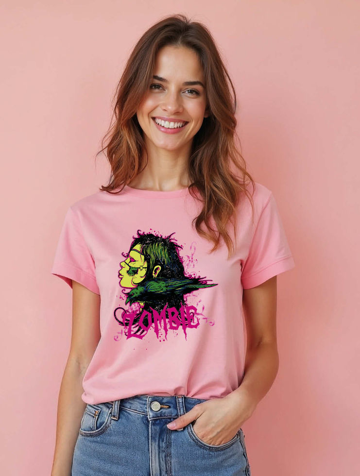 Grungy Zombie and Raven Chic Women’s Graphic T-Shirt – Best Price