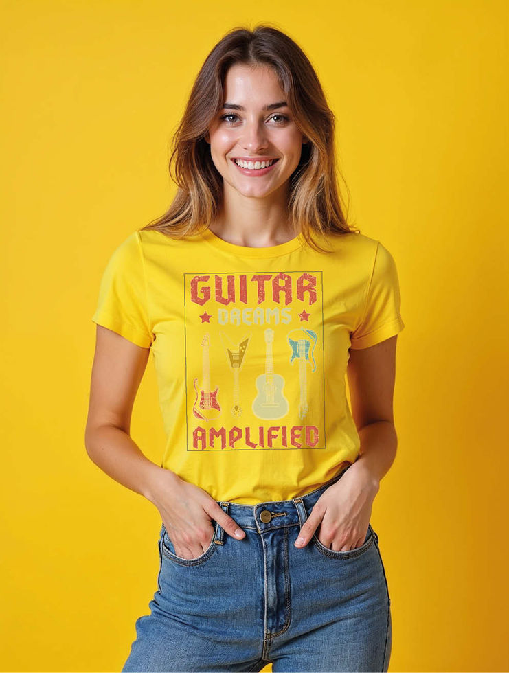 guitar dreams amplified Classic Womens Printed Graphic T-Shirt – Premium Quality