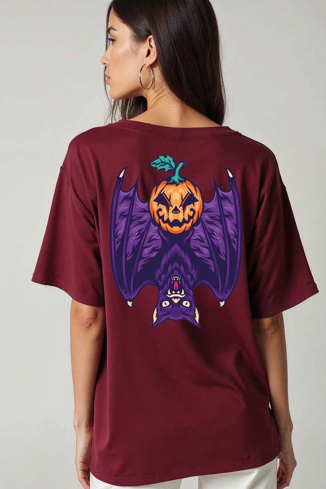 Halloween Bat & Pumpkin Classic Unisex Oversized Drop Shoulder Tees