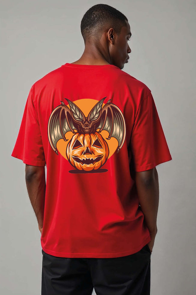 Halloween Bat & Pumpkin Trendy Unisex Drop Shoulder Oversized T-Shirt
