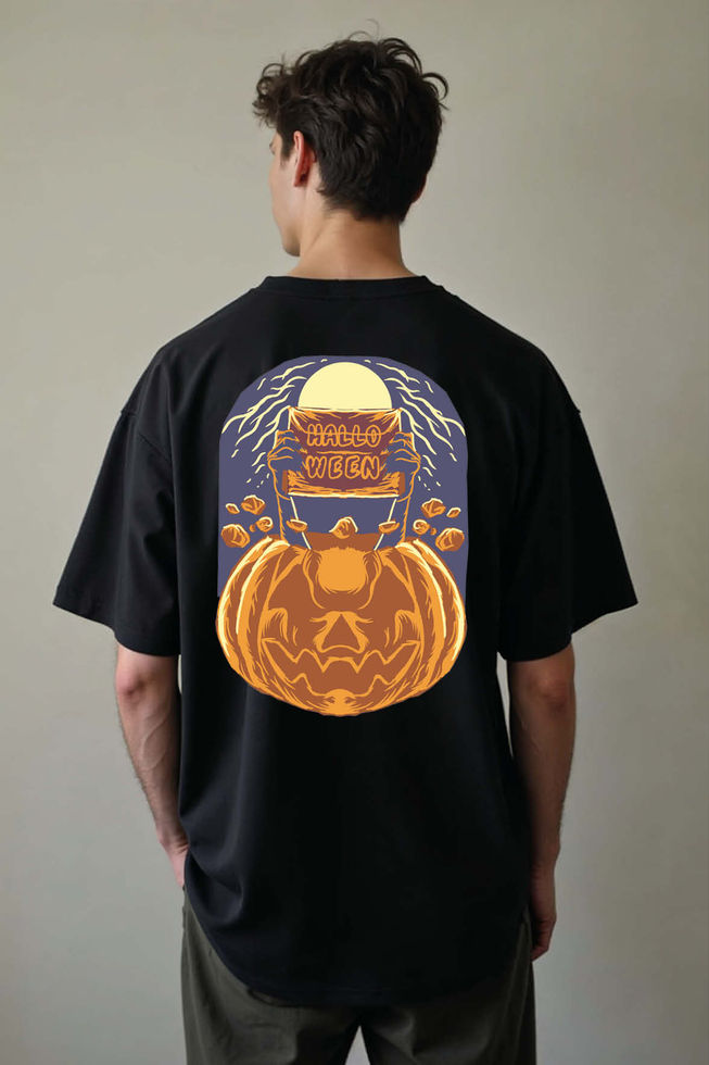 Halloween Pumpkin Cool Unisex Drop Shoulder Oversized T-Shirt for Men & Women