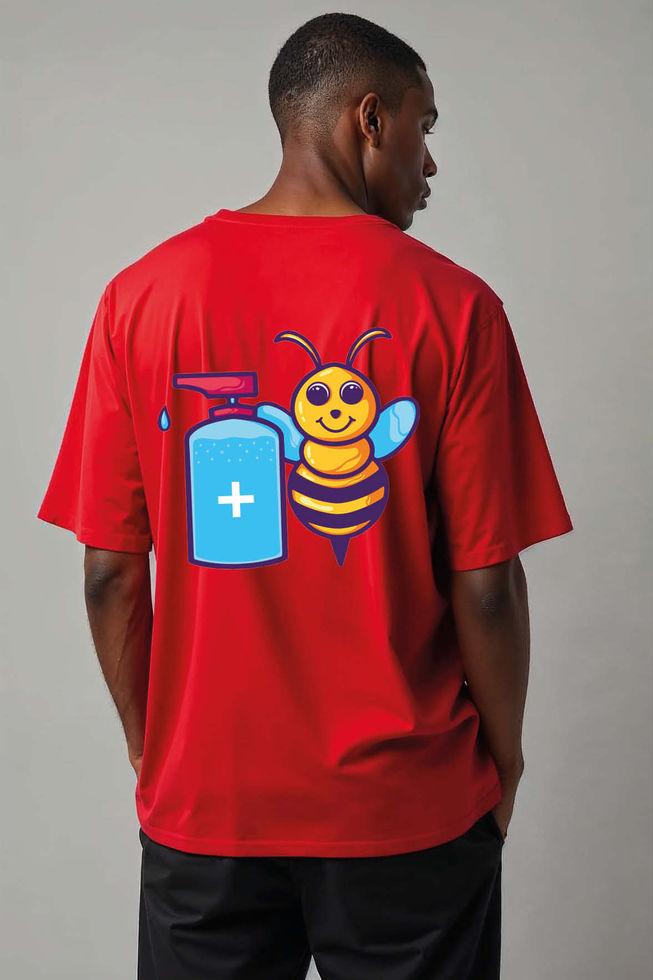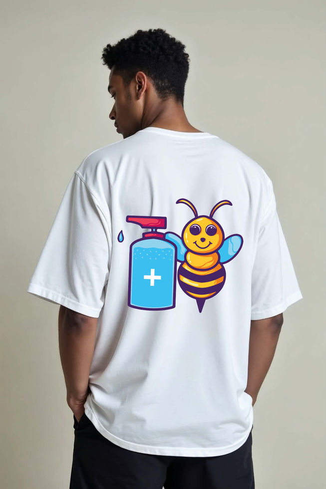 Happy Bee with Sanitizer Cool Streetwear Unisex Oversized Drop Shoulder T-Shirt
