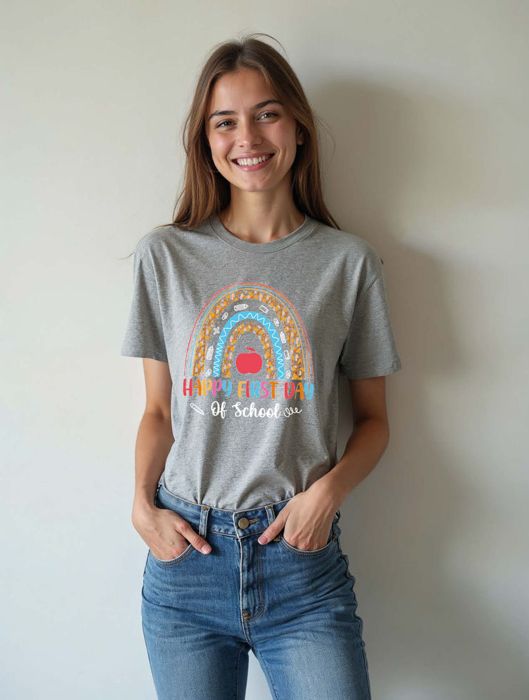 happy first day of school Classic Women’s Printed Graphic Streetwear T-Shirt