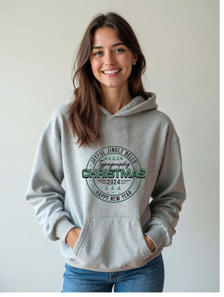 happy jingle bells typography christmas Woman's Printed Graphic Stylish Hoodies