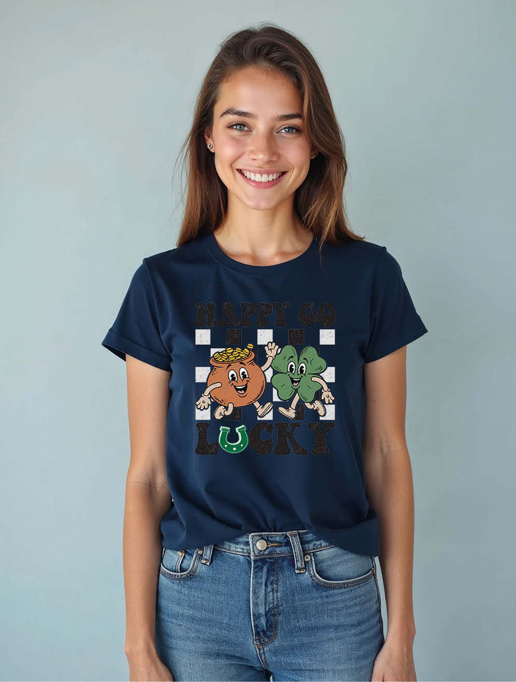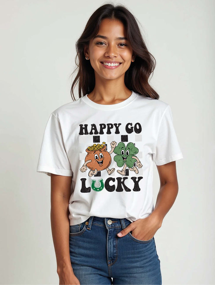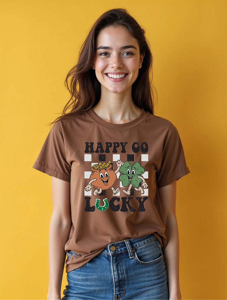 Happy to go lucky day Chic Women’s Typography T-Shirt – Buy Now