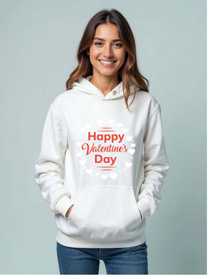 happy valentine's day Chic Women’s Typography Hoodies – Best Price