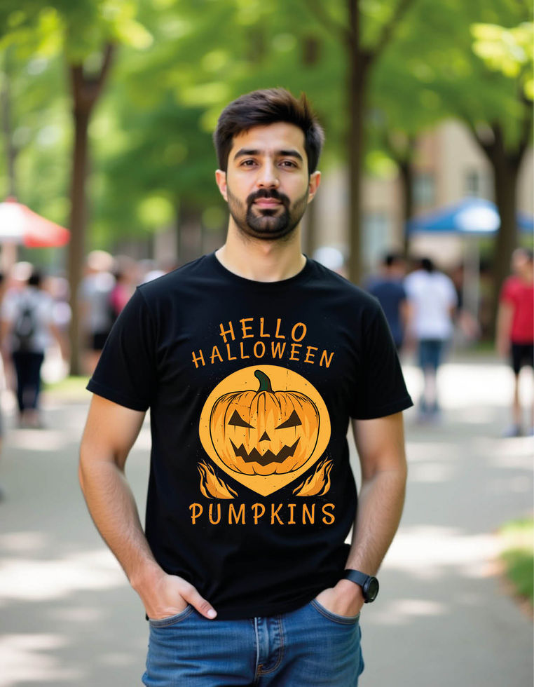 hello halloween pumpkins silhouette mens printed graphic t shirt