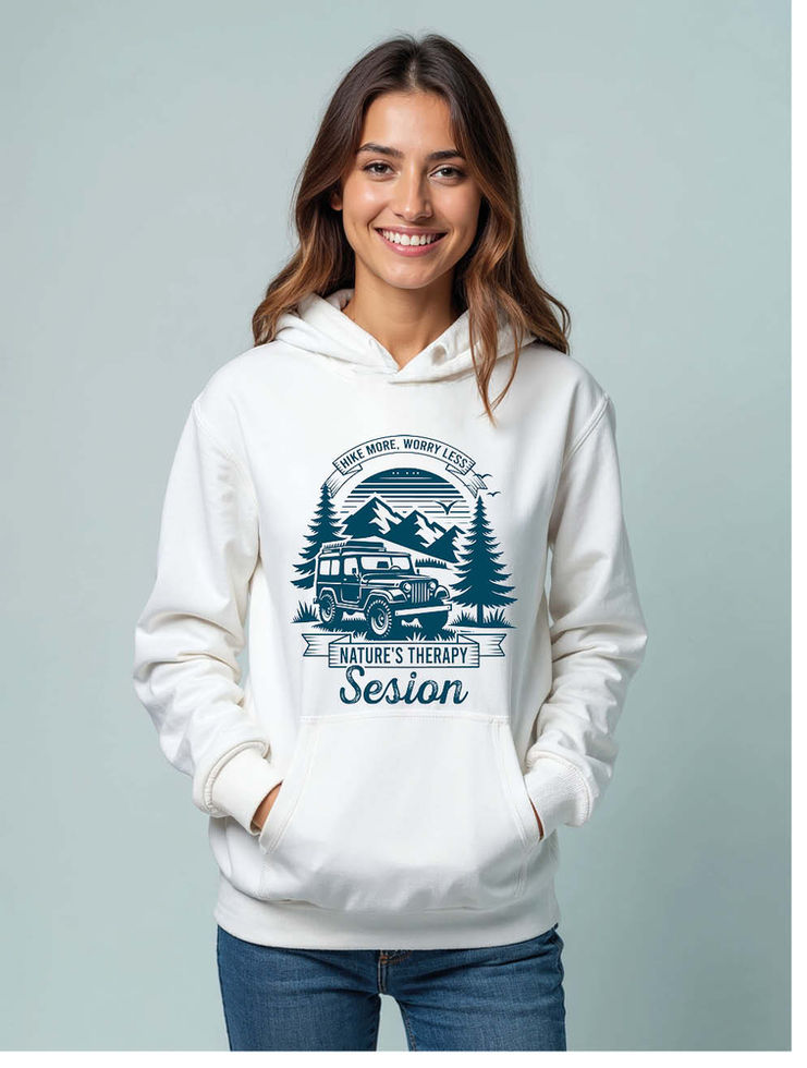 hike more worry less natures therapy sesion Trendy Women’s Printed hoodies