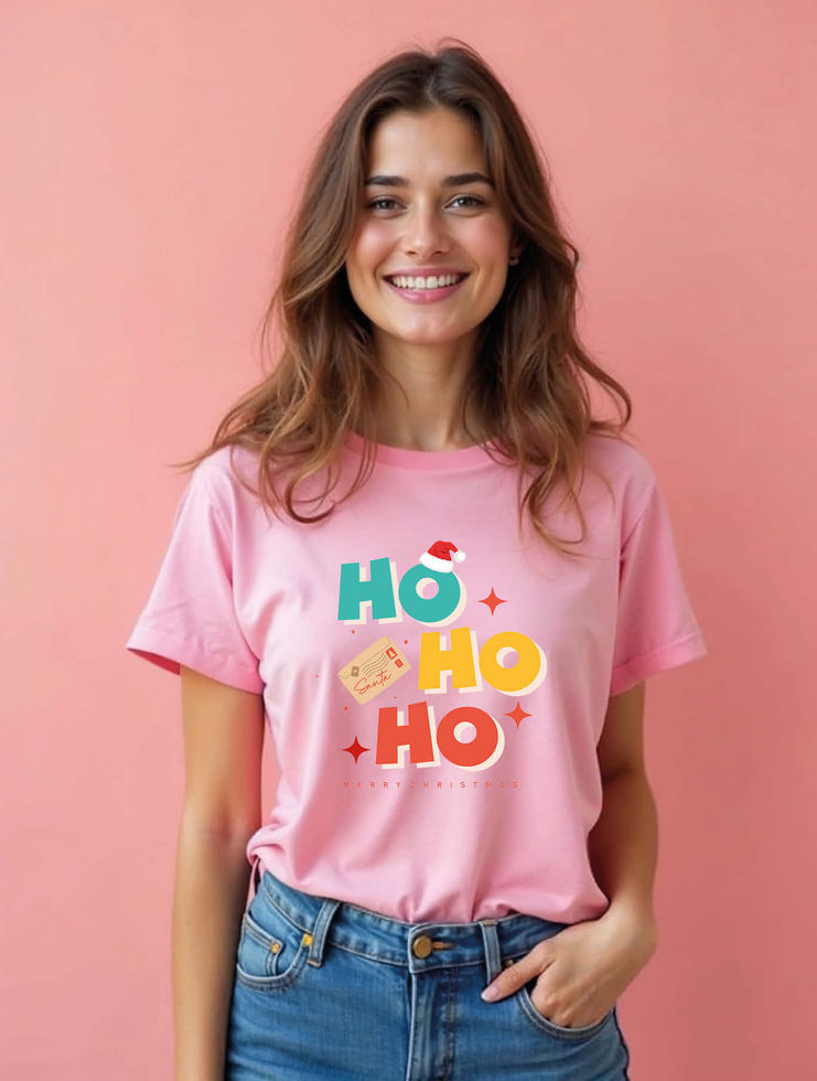 ho ho ho merry christmas Trendy Women’s printed T-Shirt – Sale