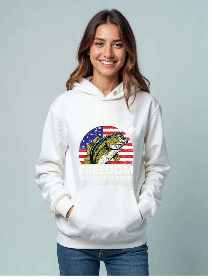 hooked on freedom one cast at a time Woman's Printed Graphic Stylish Hoodies
