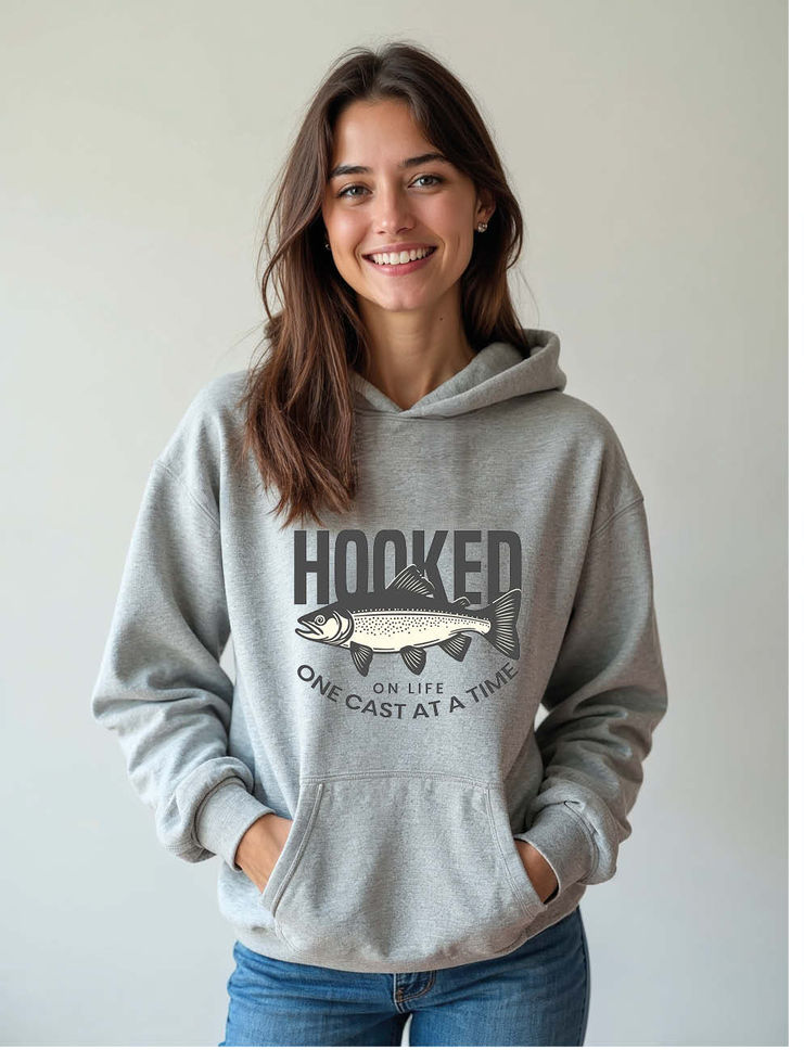 hooked on life one cast at a time Woman's Printed Graphic Stylish Hoodies