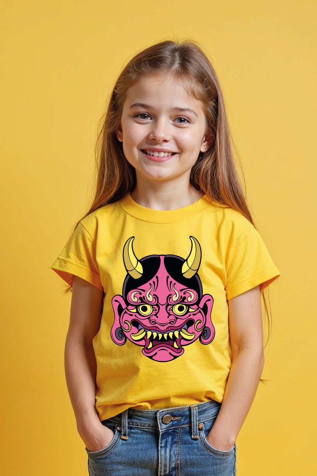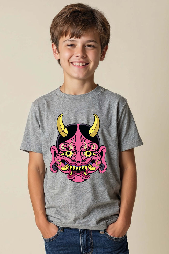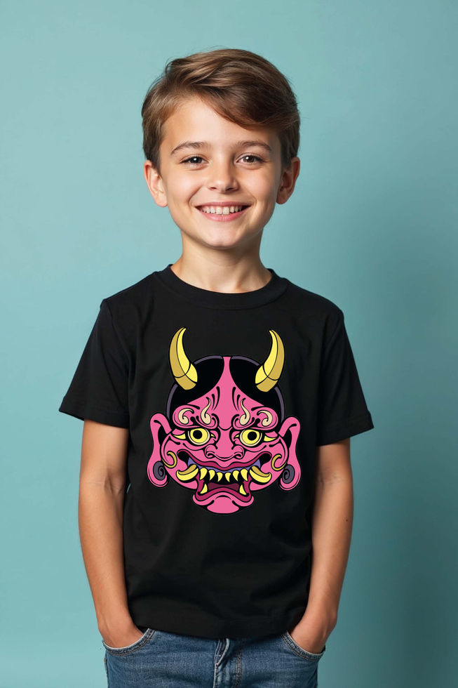 Horned Demon Oni Face Kids T-Shirt Cool Kids Graphic Tee – Artwork Print Design