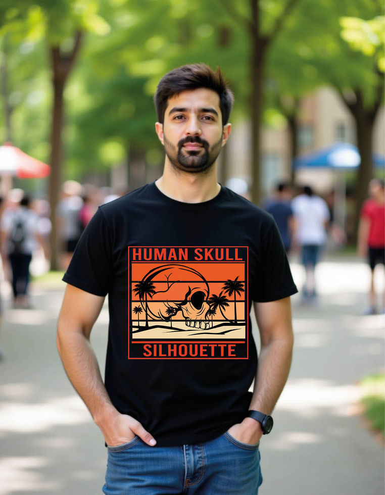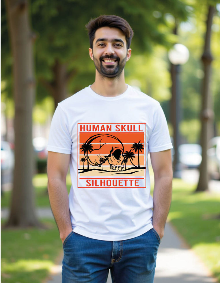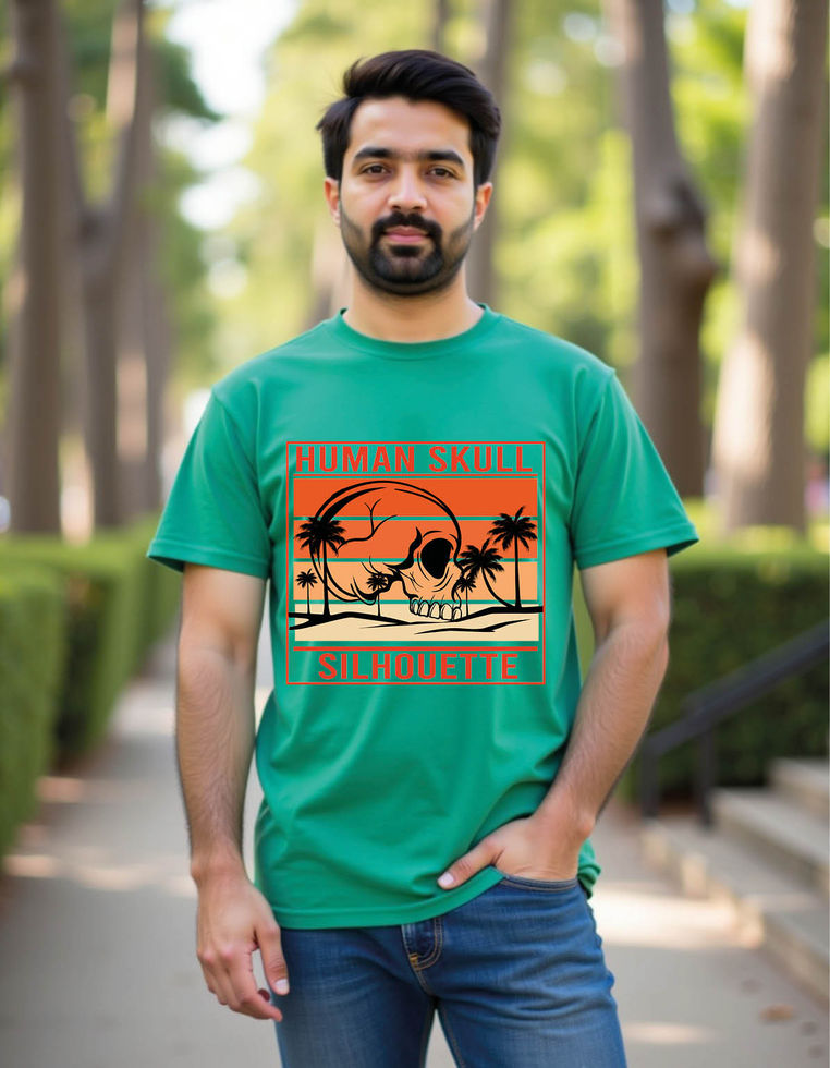 human skull silhouette retro landscape mens printed graphic t shirt