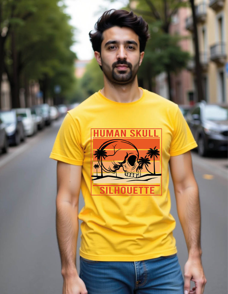 human skull silhouette retro mens printed graphic t shirt