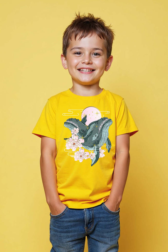 Humpback Whale Full Moon Sakura Colorful Kids Printed T-Shirt – Cartoon Print