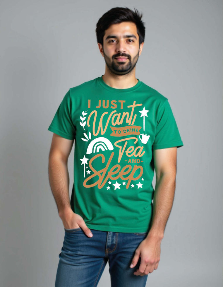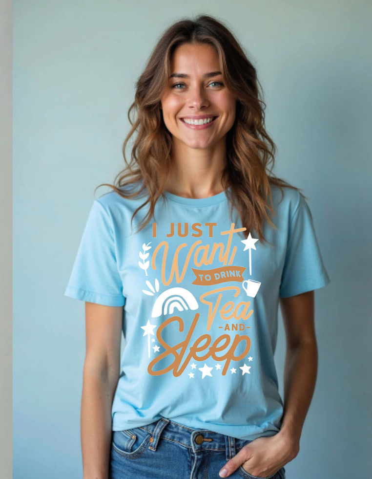 i just want to drink tea and sleep printed T-Shirt for all ages
