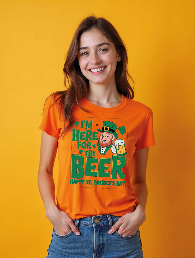 Im here for the beer Casual Women’s Typography T-Shirt – Discount Offer