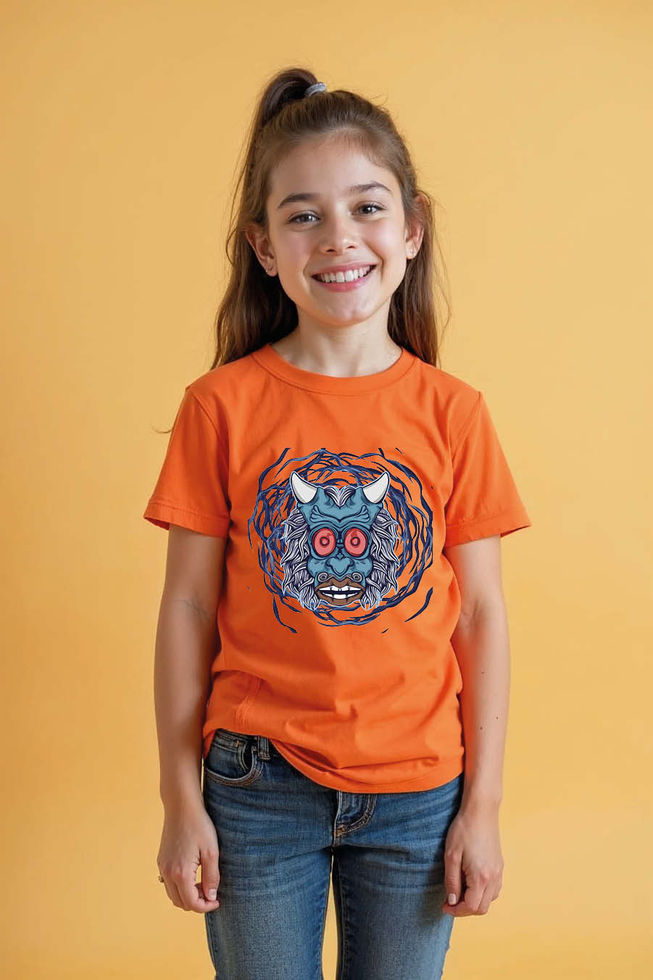 Intense Abstract Oni Mask Kids' Graphic T-Shirt Modern Kids Graphic Tee