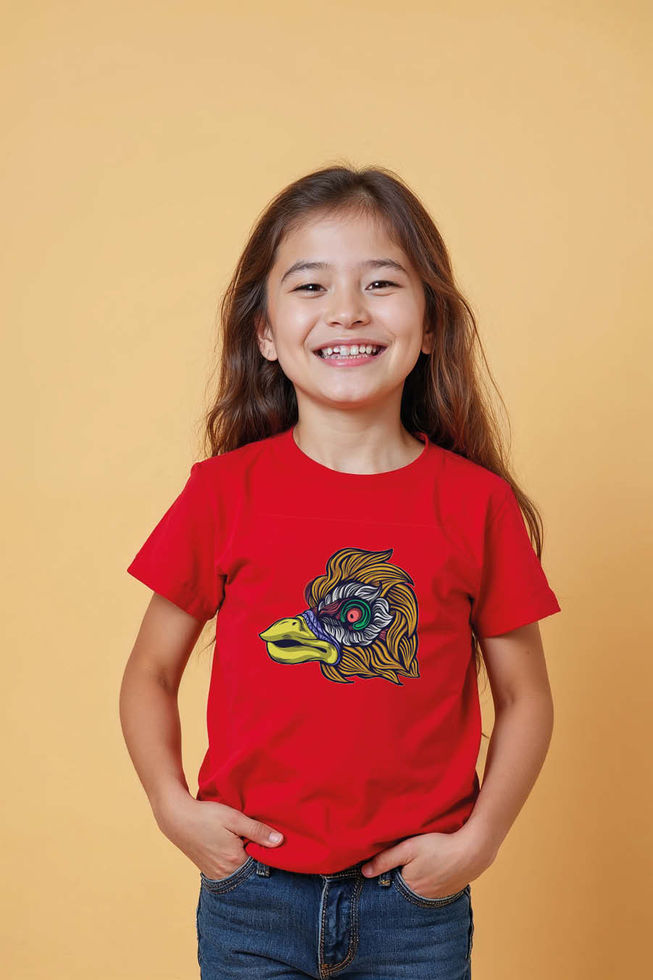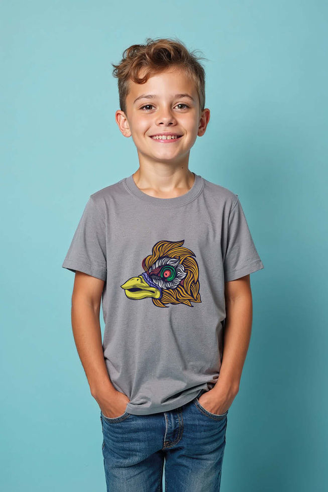 Intricate Abstract Bird Head Kids Graphic Tee Soft Cartoon Printed T-Shirt
