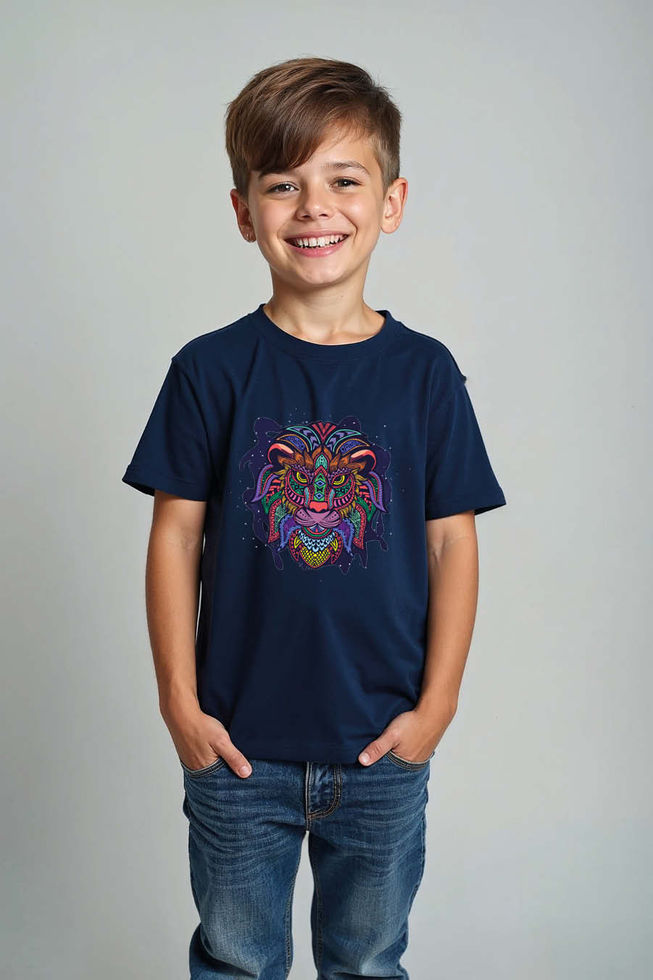 Intricate Mandala Style Wild Cat Kids Graphic Tee Soft Stylish Kids Graphic Tees