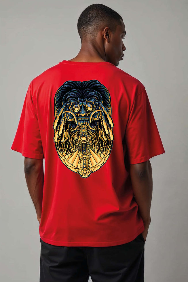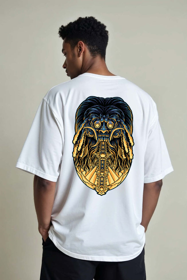 Intricate Tribal Mask Medallion Urban Graphic Oversized Drop Shoulder T-Shirt