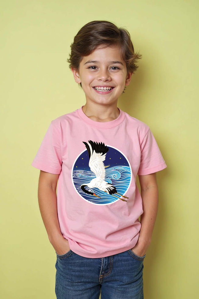 Japanese Crane Flying Night Waves Kids T-Shirt Modern Cute Kids Typography
