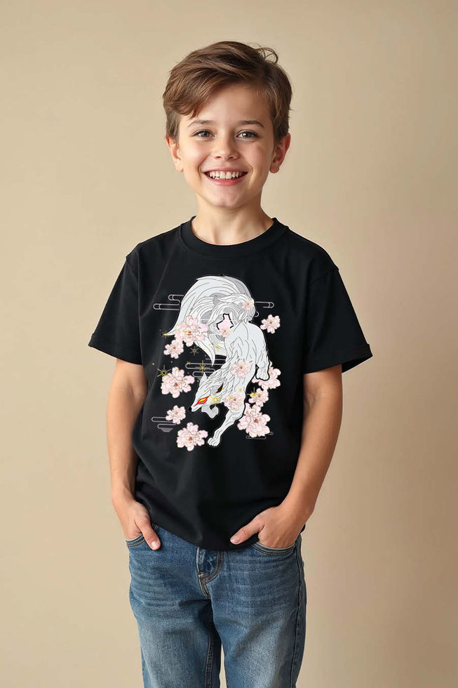 Japanese Fox and Cherry Blossom Printed T-Shirt for Girls – Stylish Anime Art