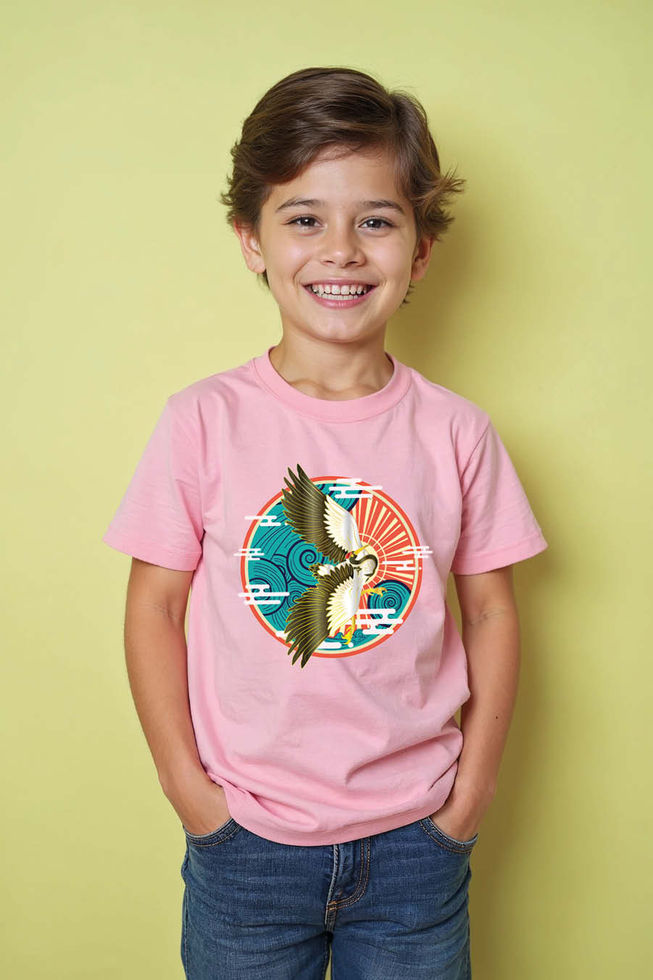 Japanese-Inspired Eagle Casual Kids Graphic Tee – Drawing Print Design for Boys