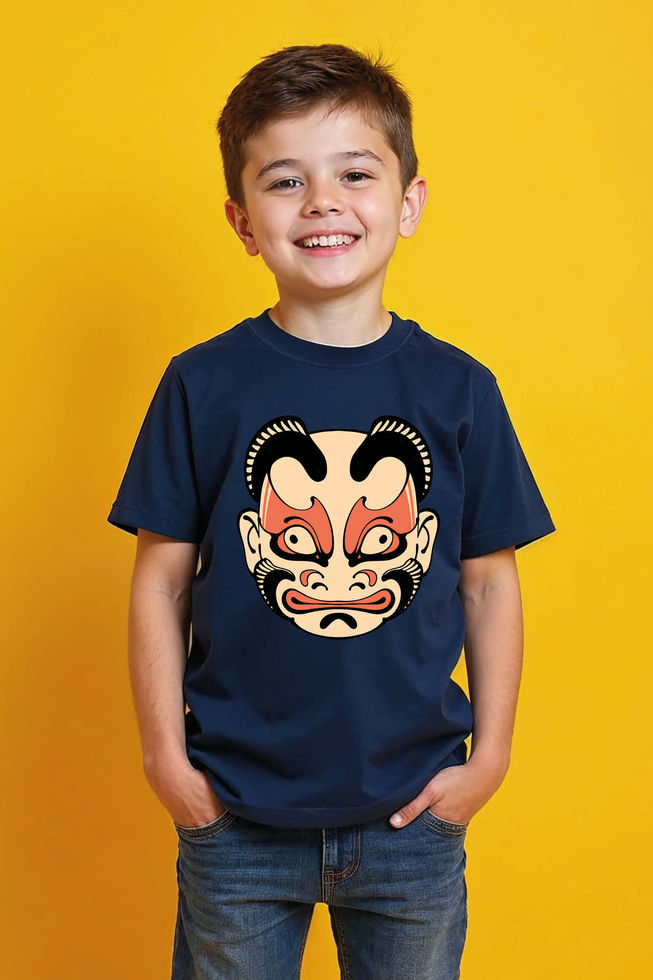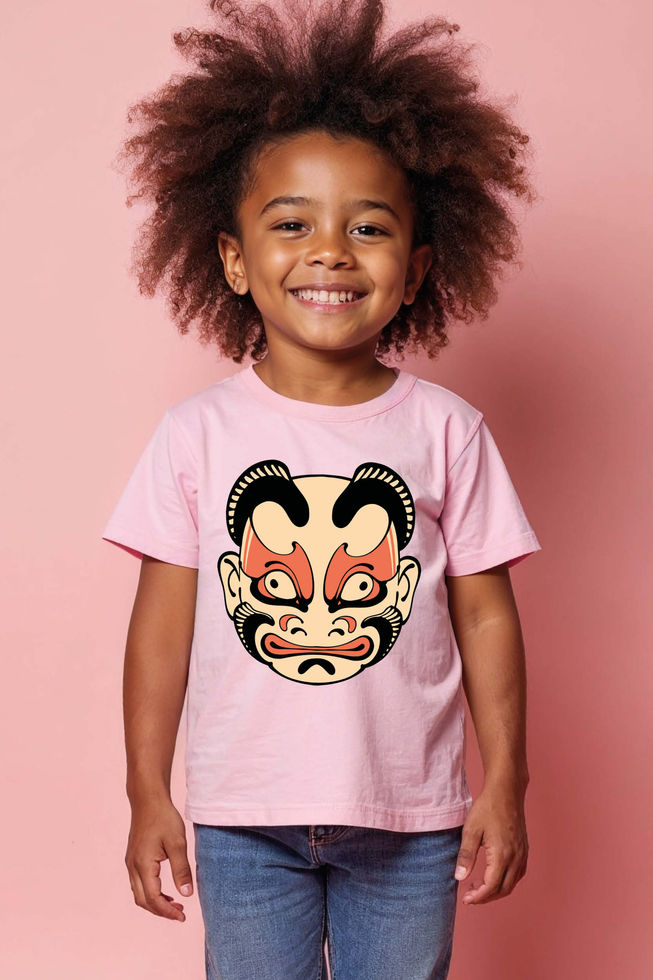 Japanese Kabuki Mask Kids T-Shirt Fashion Typography Print T-Shirt for Kids