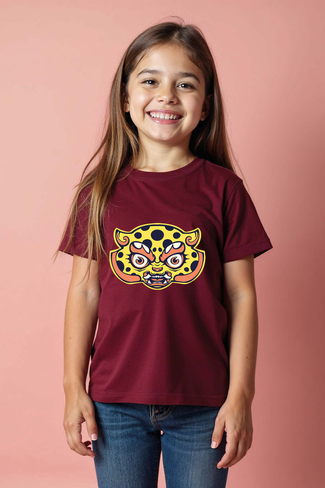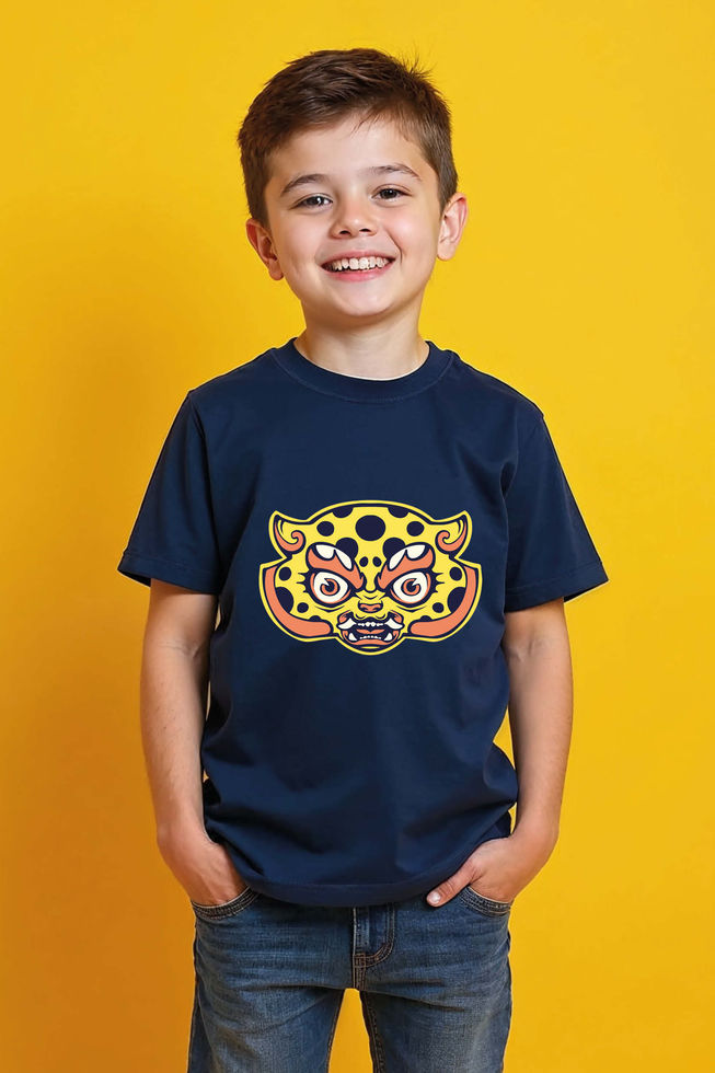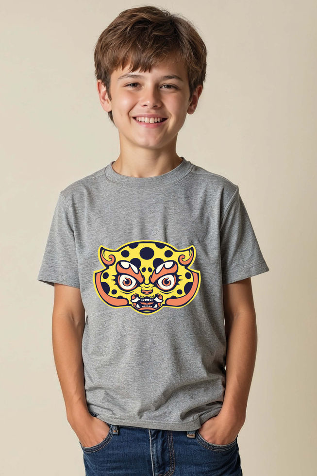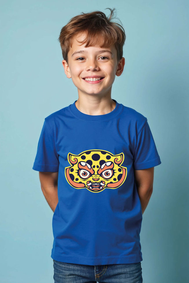 Japanese Leopard Yokai Mask Kids T-Shirt Comfortable Casual Kids Printed T-Shirt