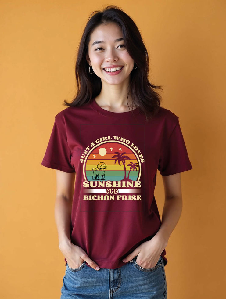 just a girl who loves sunshine and bichon frise Trendy Women’s Printed T-Shirt
