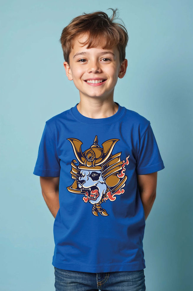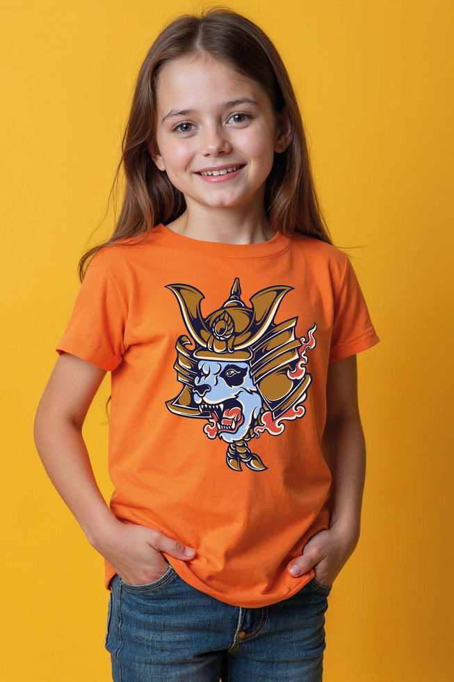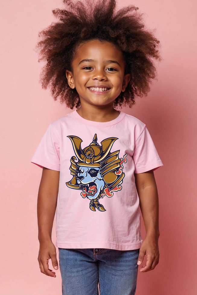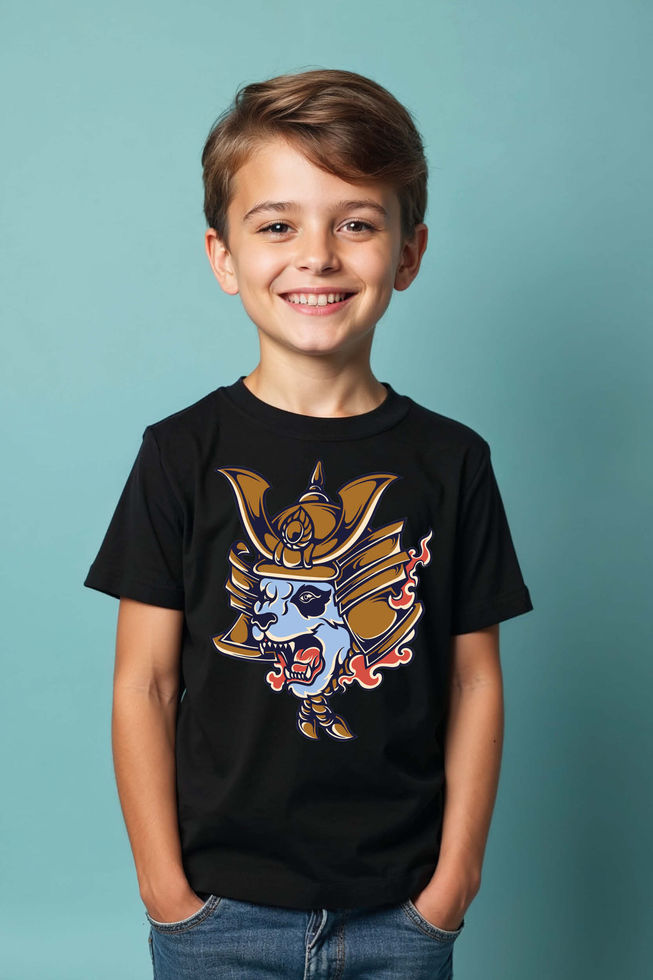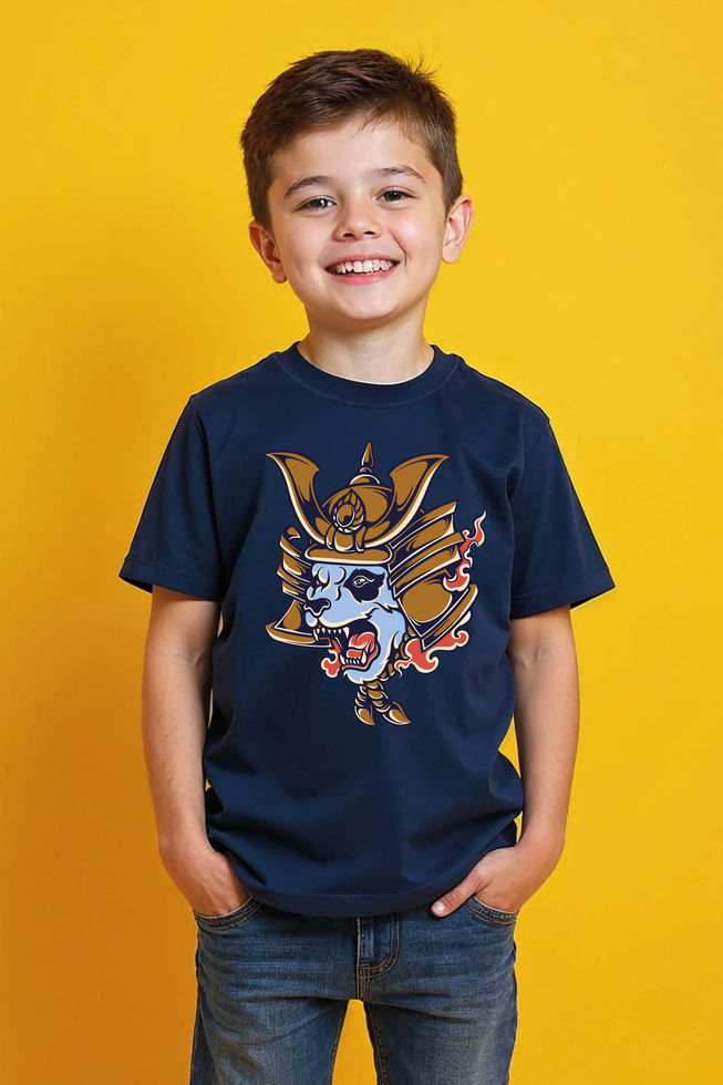 Kids Aggressive Samurai Skull Graphic T-Shirt Playful Stylish Kids Graphic tees