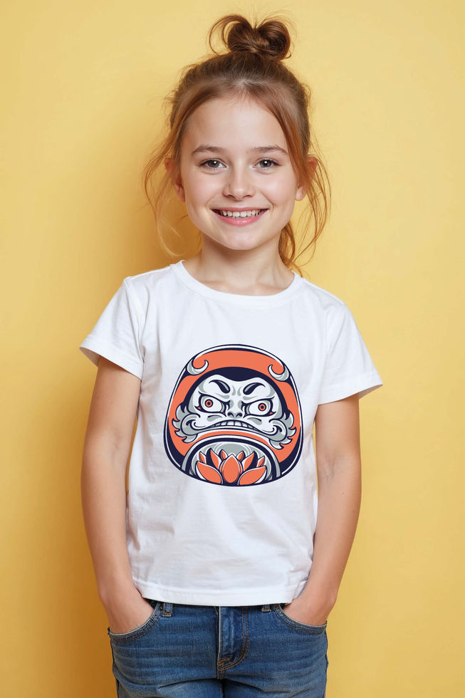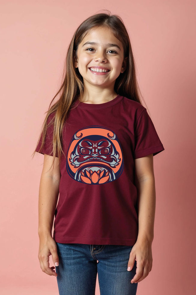 Kids Angry Daruma Lotus Graphic T-Shirt Cool Cute Kids Typography T-Shirt