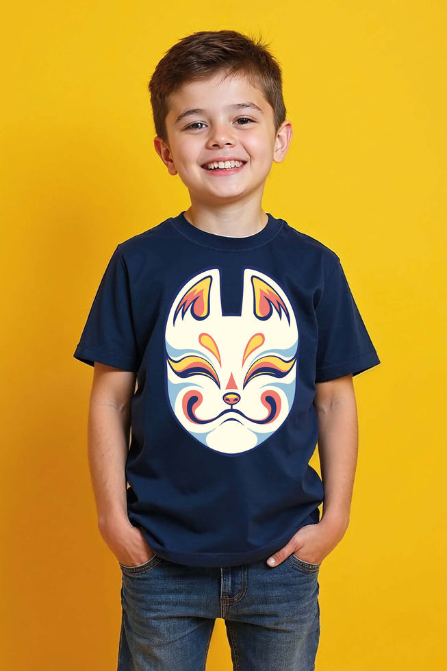 Kids' Colorful Japanese Kitsune Mask Graphic T-Shirt Premium Soft Printed Kids