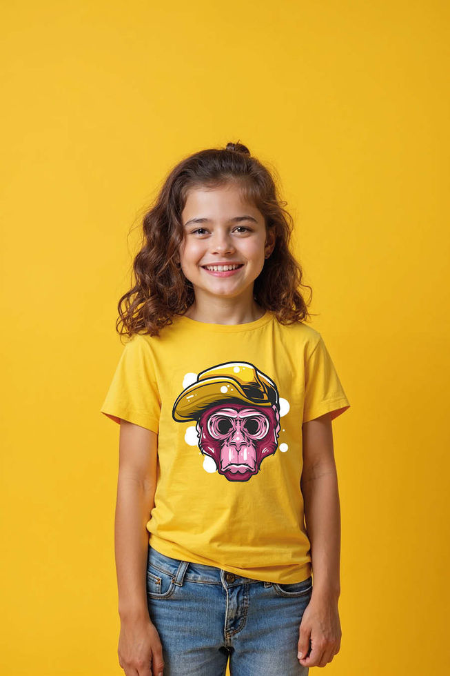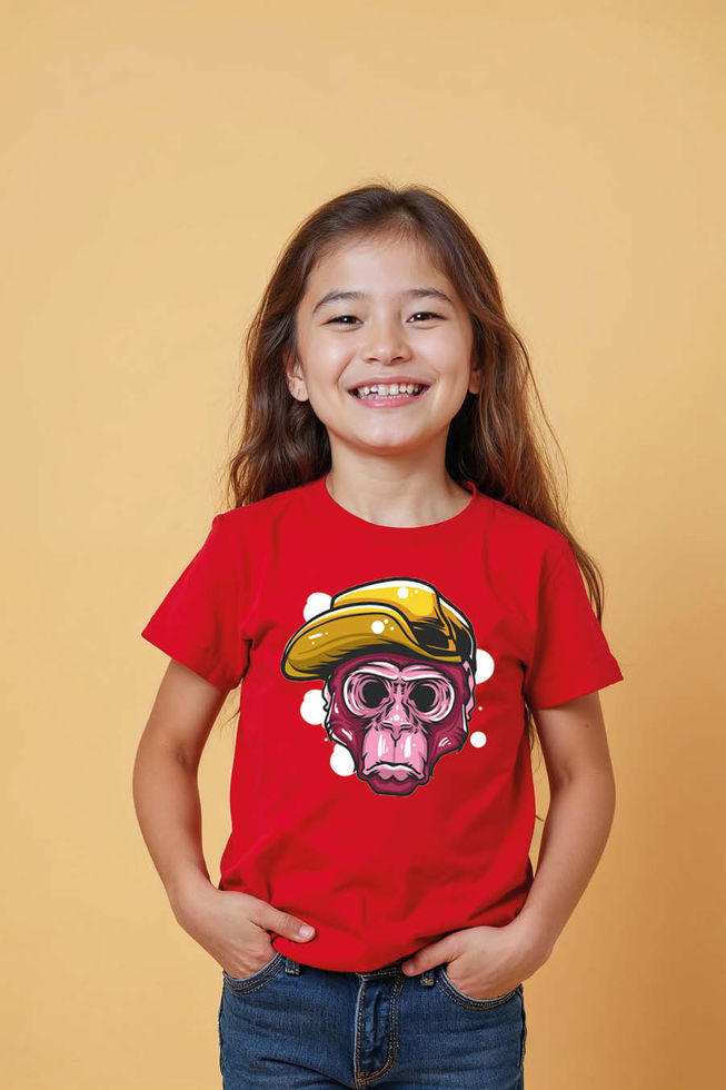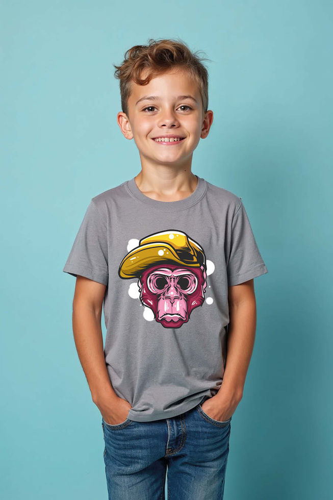 Kids Cool Monkey with Baseball Cap T-Shirt Cotton Trendy Printed Tee for Kids
