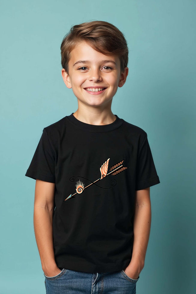 Kids Flaming Winged Arrow Graphic T-Shirt Modern Kids Graphic Tee – Artwork
