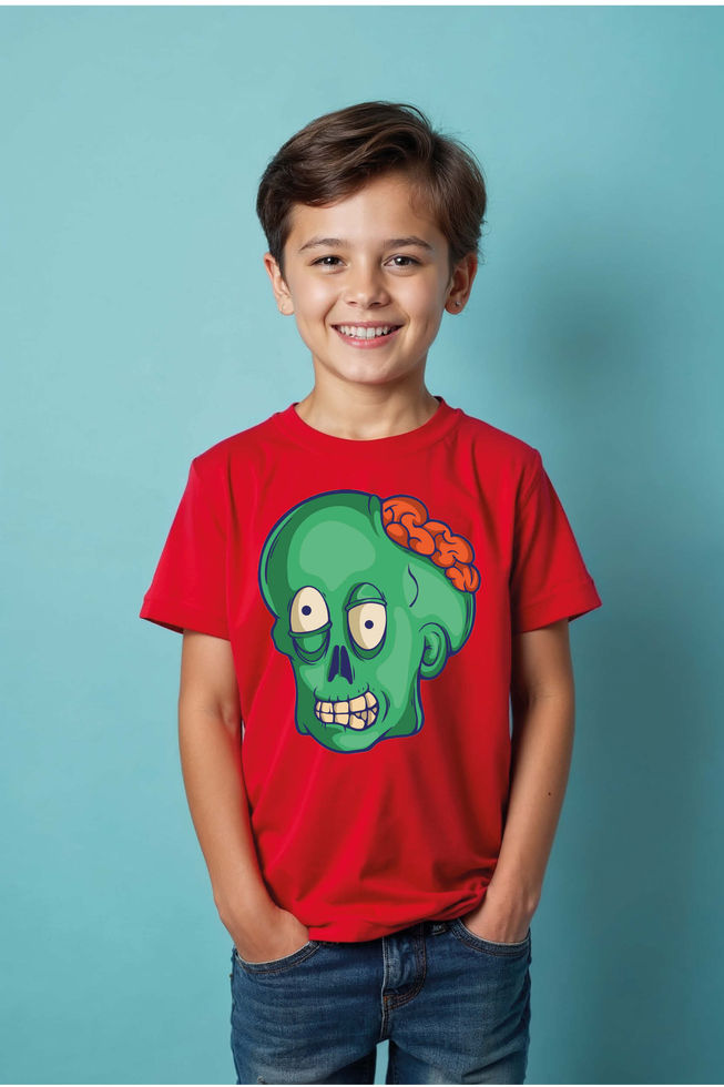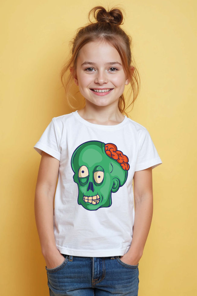 Kids' Green Zombie Head with Brain Graphic T-Shirt Colorful Comfortable Cotton