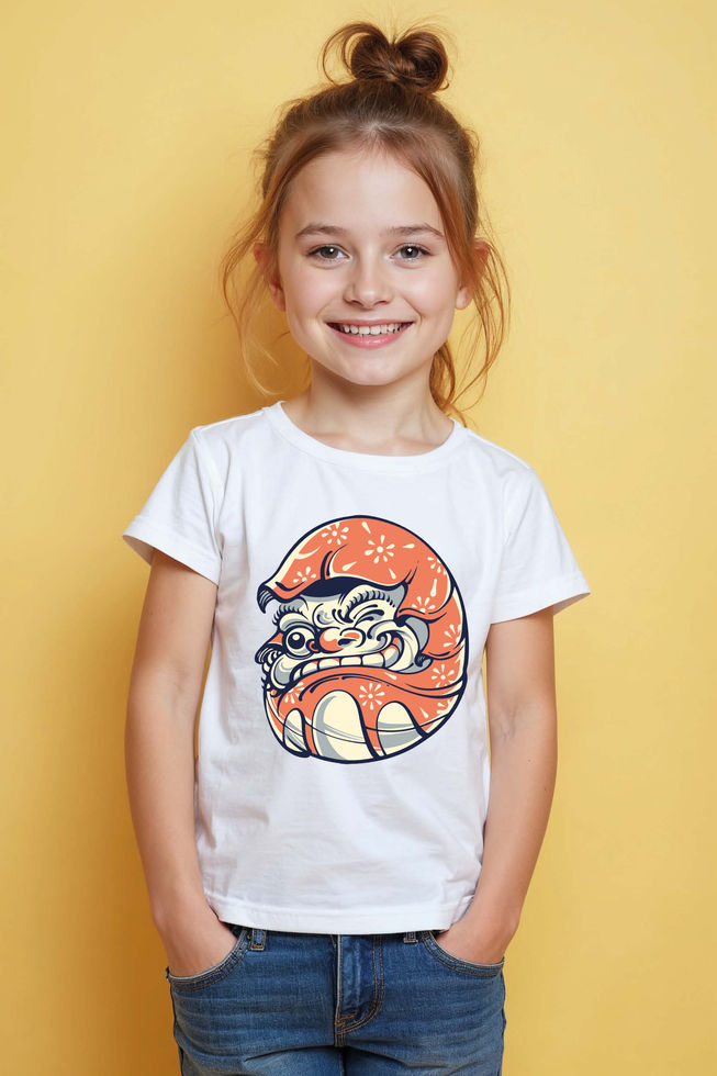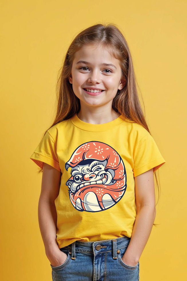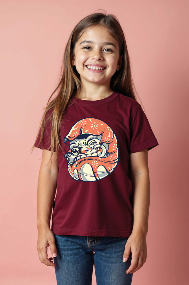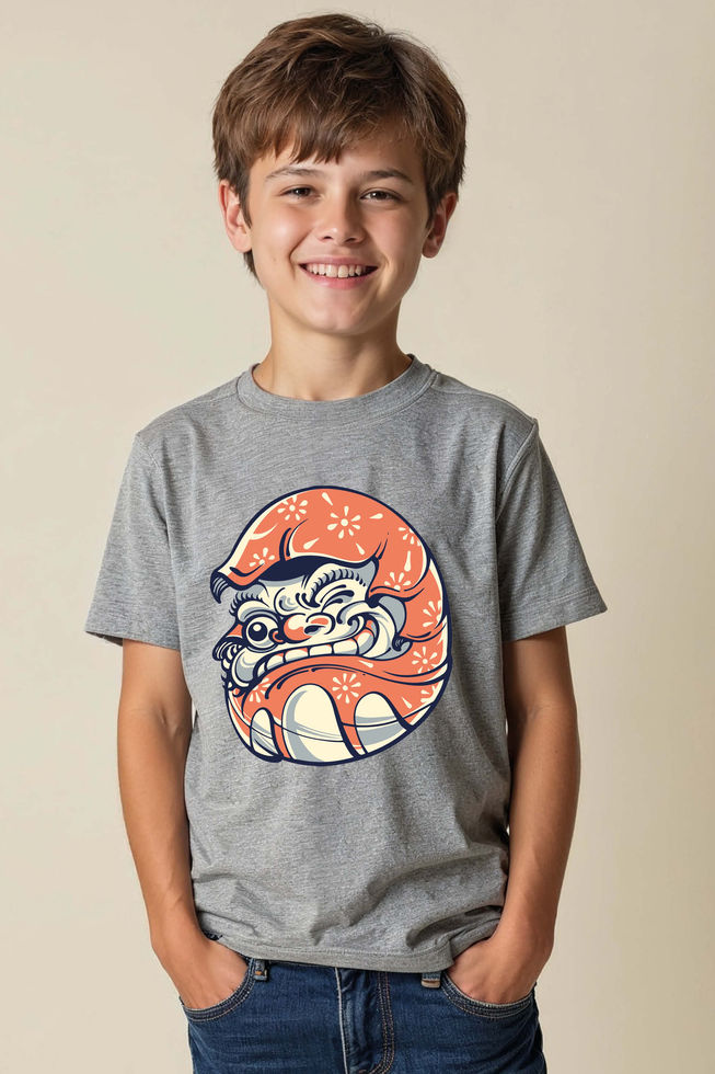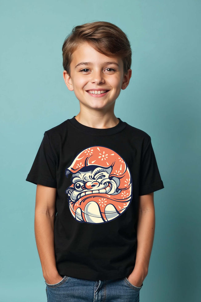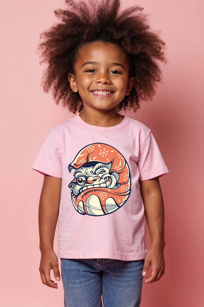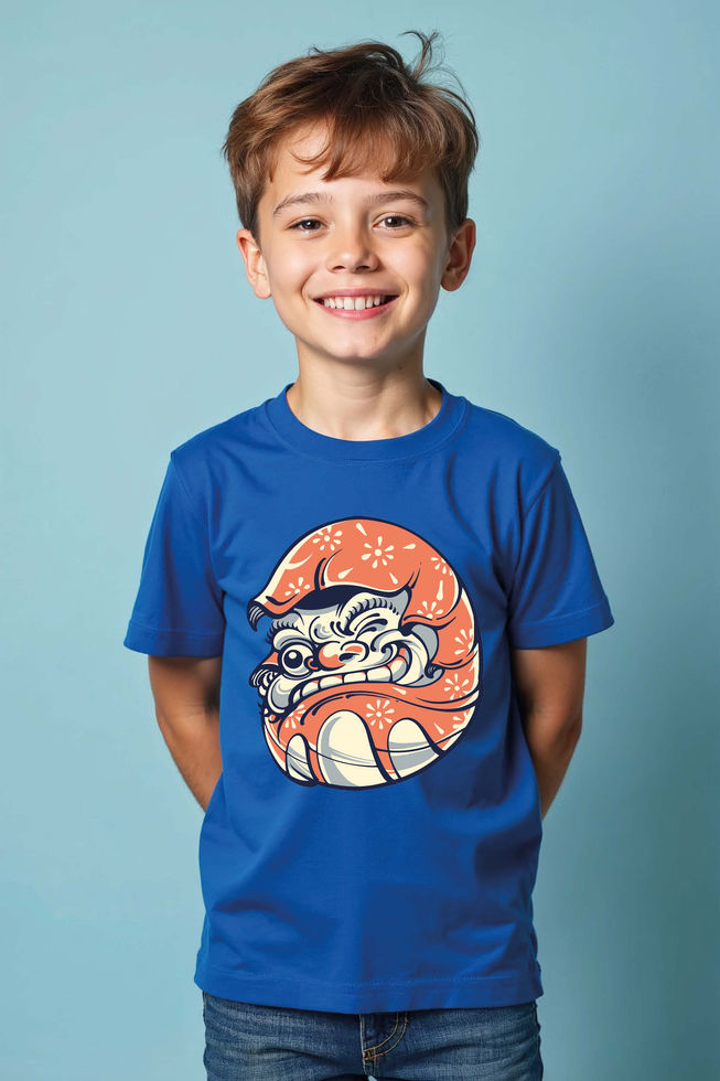 Kids Grinning Japanese Oni Face T-Shirt Trendy Cute Kids Typography T-Shirt