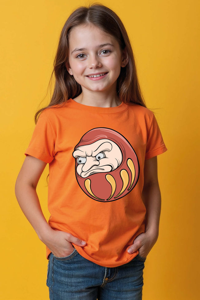 Kids' Grumpy Daruma Doll Graphic T-Shirt Playful Trendy Printed Tee for Kids