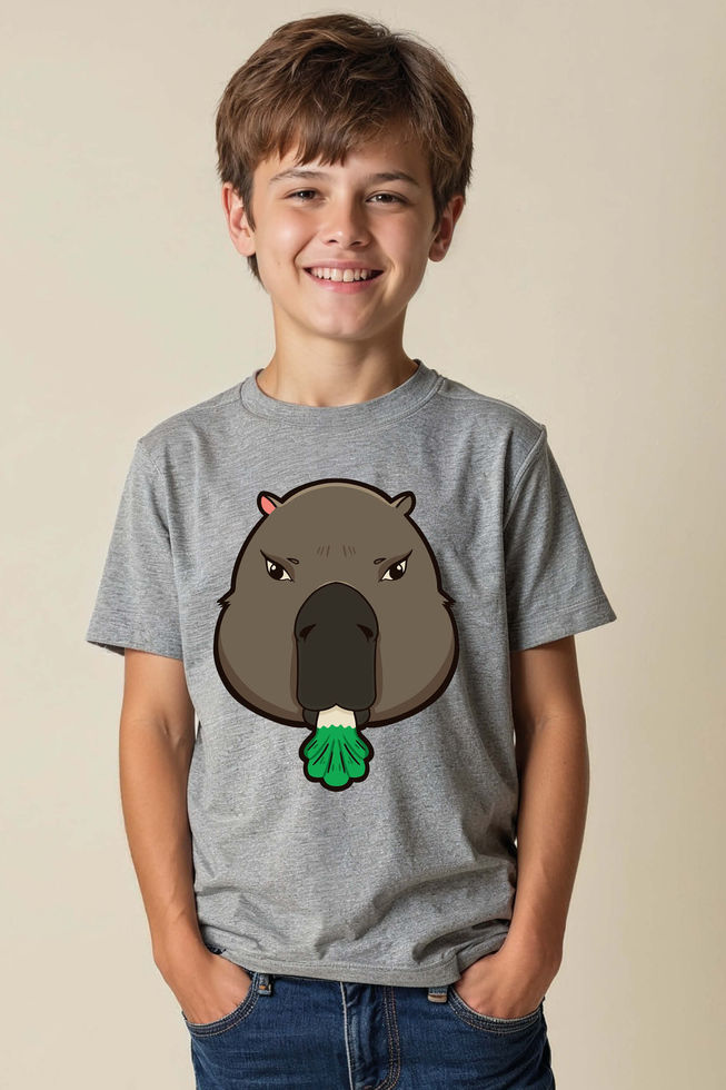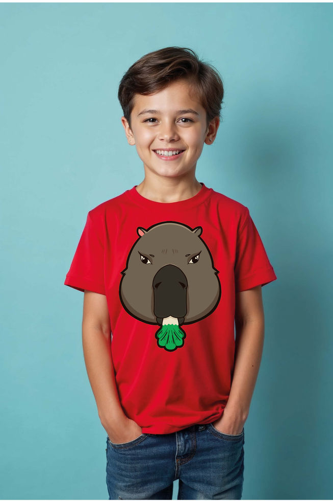 Kids' Grumpy Wombat Eating Leaves Graphic T-Shirt Soft Kids Fashion T-Shirt
