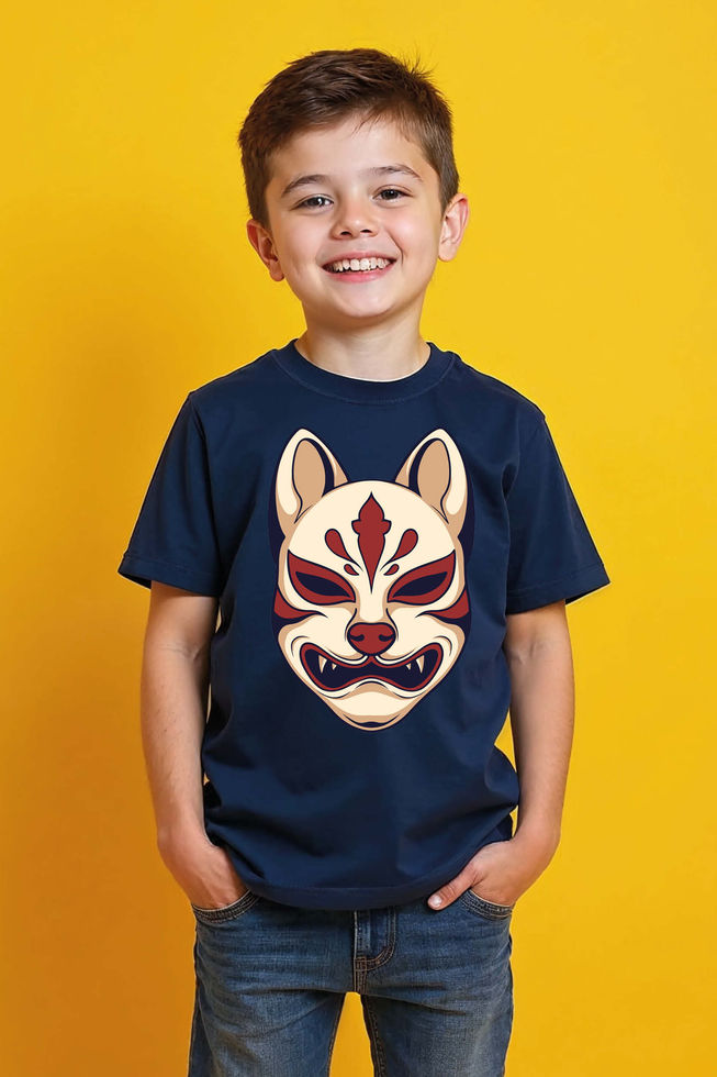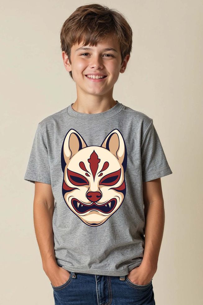 Kids' Japanese Kitsune Demon Mask Graphic T-Shirt Premium Cool Kids Tee